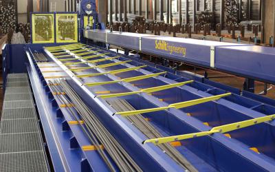 Robust roller conveyors with frequency-controlled drives for collecting and further transporting of cut bars