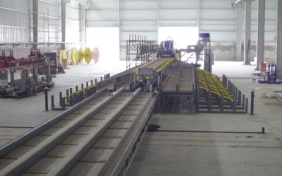 Distribution trolley for lateral movement of bars to various other roller conveyors, for further transport or buffering