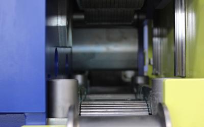 Robust roller conveyors with frequency-controlled drives for collecting and further transporting of cut bars