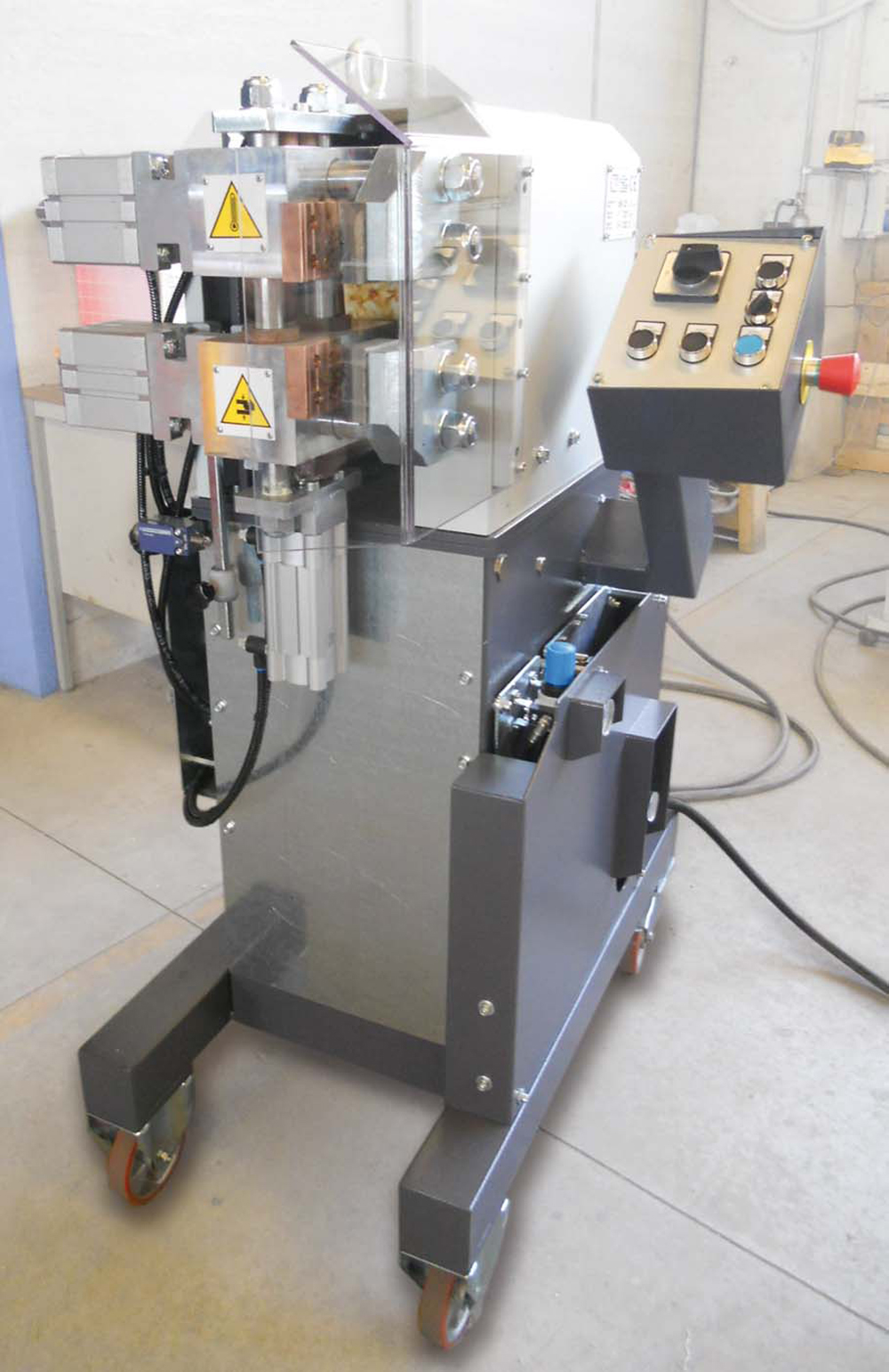 - Butt welding machine with pneumatic clamping and vertical welding axis
