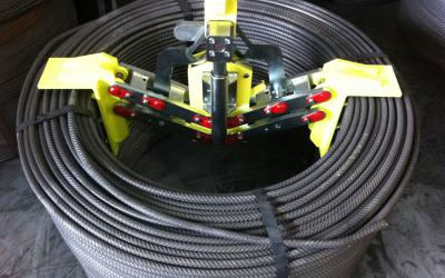 An automatic mechanical system inside the clamp makes picking up and lifting coils very easy.
