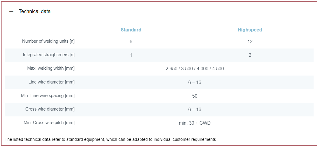 6/12 בתי אלקטרודות נעים , מאפשר גמישות מקסימלית לייצור כל סוגי הרשתות.