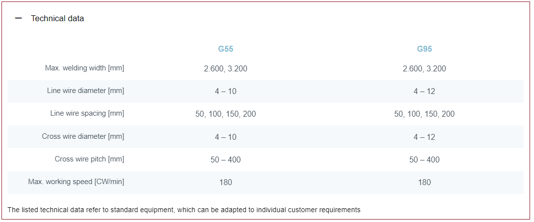 G55 / G95 - Welding line for the production of reinforcing mesh