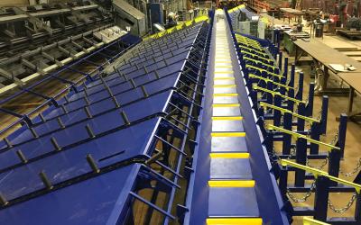 Chain conveyors for buffer to double benders or bending tables