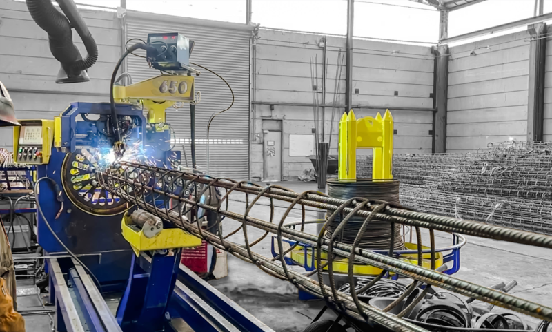 Rebar pile cage welding machine for cages from Ø150mm up to Ø650mm.
